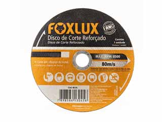 Descrição: Os Discos de Corte Foxlux atendem as normas ABNT NBR 15230, garantindo máxima segurança e performance. Corta todos os materiais ¿ econômia de tempo sem necessidade de troca de disco (para modelos 2 em 1). Possui design ultra fino para menor perda de material, menos pó e menos ruído. Características: Máxima precisão e cortes retos Fórmula avançada de grãos e aglomerantes proporcionam maior vida útil, maior rapidez e capacidade de remoção de material Duas telas ¿ máxima segurança e estabilidade que garantem cortes retos Menos vibrações para um trabalho mais confortável